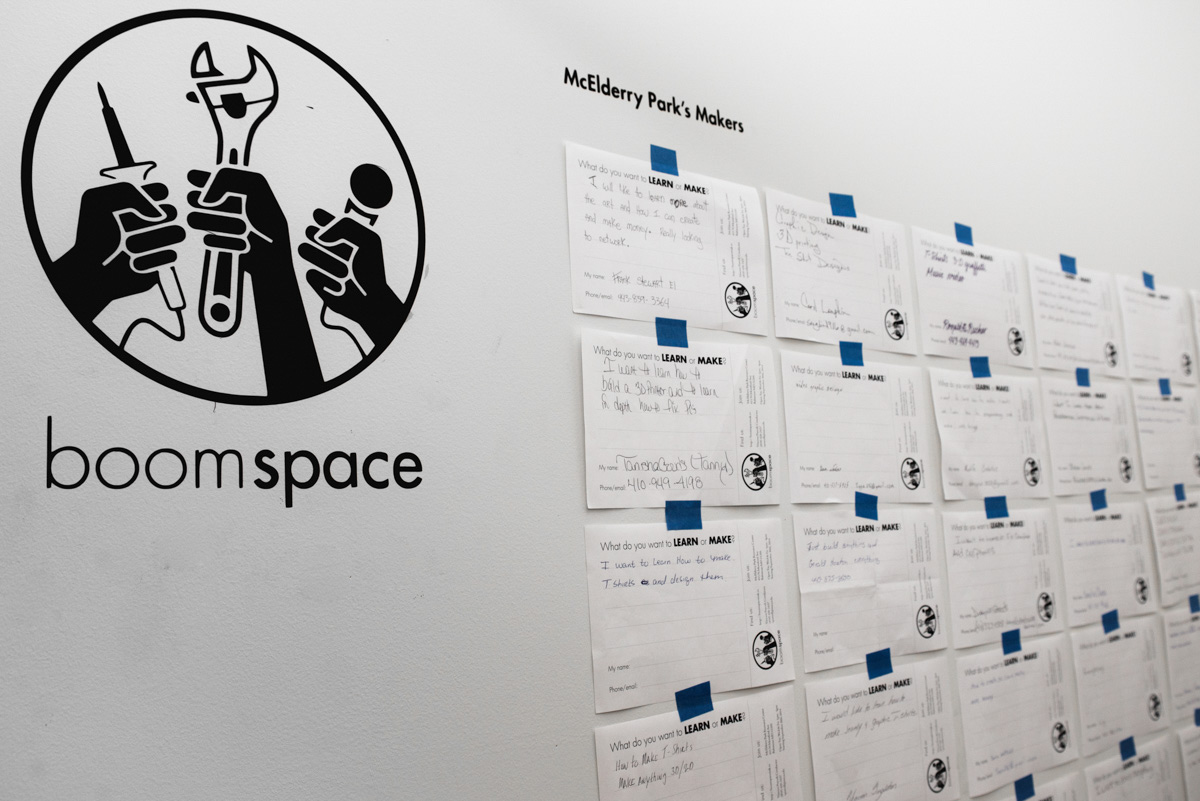 Boomspace Makerspace was a makerspace designed for community empowerment. In McElderry Park, a neighborhood of East Baltimore breaking out of the effects of institutional racism and generations-long neglect, Boomspace worked with the local neighborhood association and community partners to build a fully-featured digital fabrication space. At its peak, Boomspace engaged with dozens of local youth, teaching the basics of 3D Modeling, 3D Printing, 2D design, Laser cutting, CNC machining, modern web design, game design, and other 21st century digital skills.