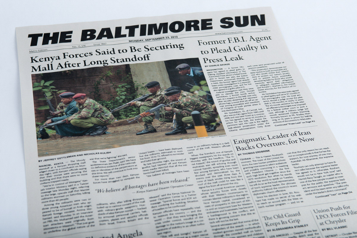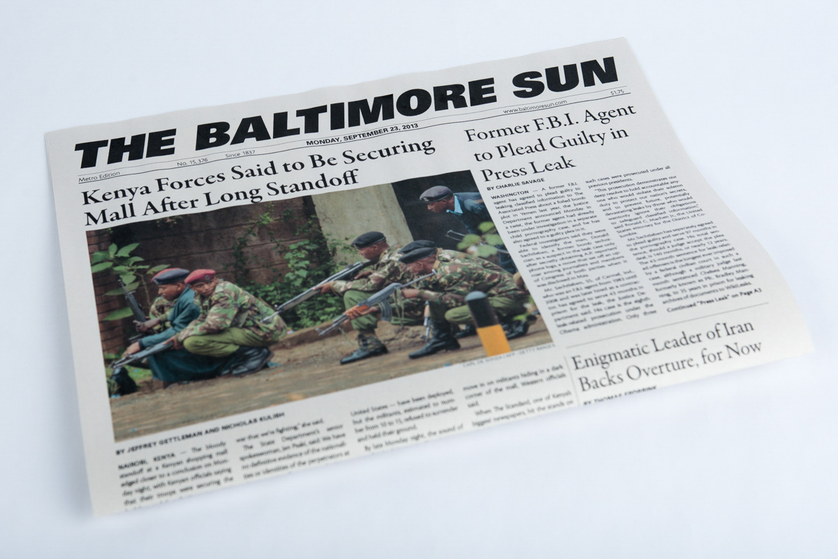 Baltimore Sun Newspaper Concept Concept, design and physical mockup for a redesign of the Baltimore Sun Newspaper. Design Concept